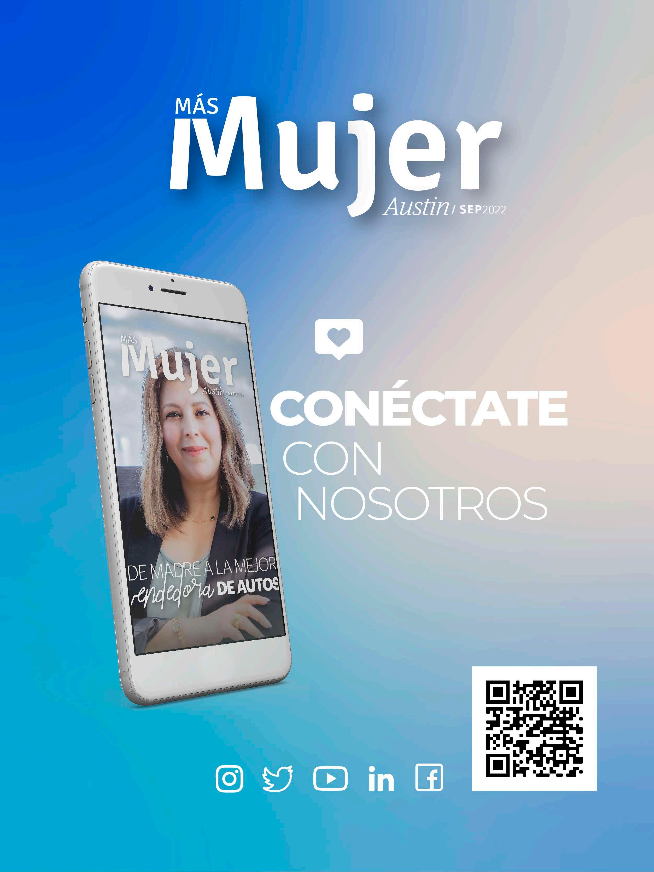MÁS MUJER (ISSN Pendiente), Volumen 9, Número 10, Septiembre 2023. Publicada 12 veces al año por Tarro Media. Todos los derechos reservados. Prohibida la reproducción total o parcial sin previa autorización. MÁS MUJER es propiedad de TARRO Media. Oficina ejecutivas, editoriales y de publicidad: Austin, Tx. Servicios al consumidor (512) 731-0886 o contacto@reporteaustin.com. Para suscribirse a nuestras ediciones digitales: contacto@reporteaustin.com