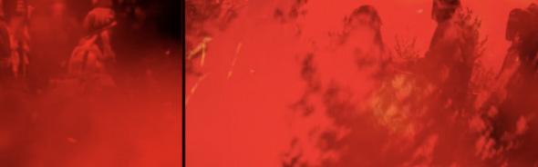 As the animations unfold, vivid images of farms, cattle, woods, and open fields slowly fade away to reveal fires, dense smoke, and destroyed vegetation. As one image gradually disappears into the other, it is hard to recognize which is the burning landscape and which is the unharmed one. The subtle pace at which the photographs overlap allows a close and intimate dialogue for the viewer to recognize the possibility that these devastating fires may happen in familiar surroundings. The work provokes questions— Where did this wildfire happen? What if this wildfire happened close to me or my loved ones? What if a wildfire occurs in a place I have lived or visited?