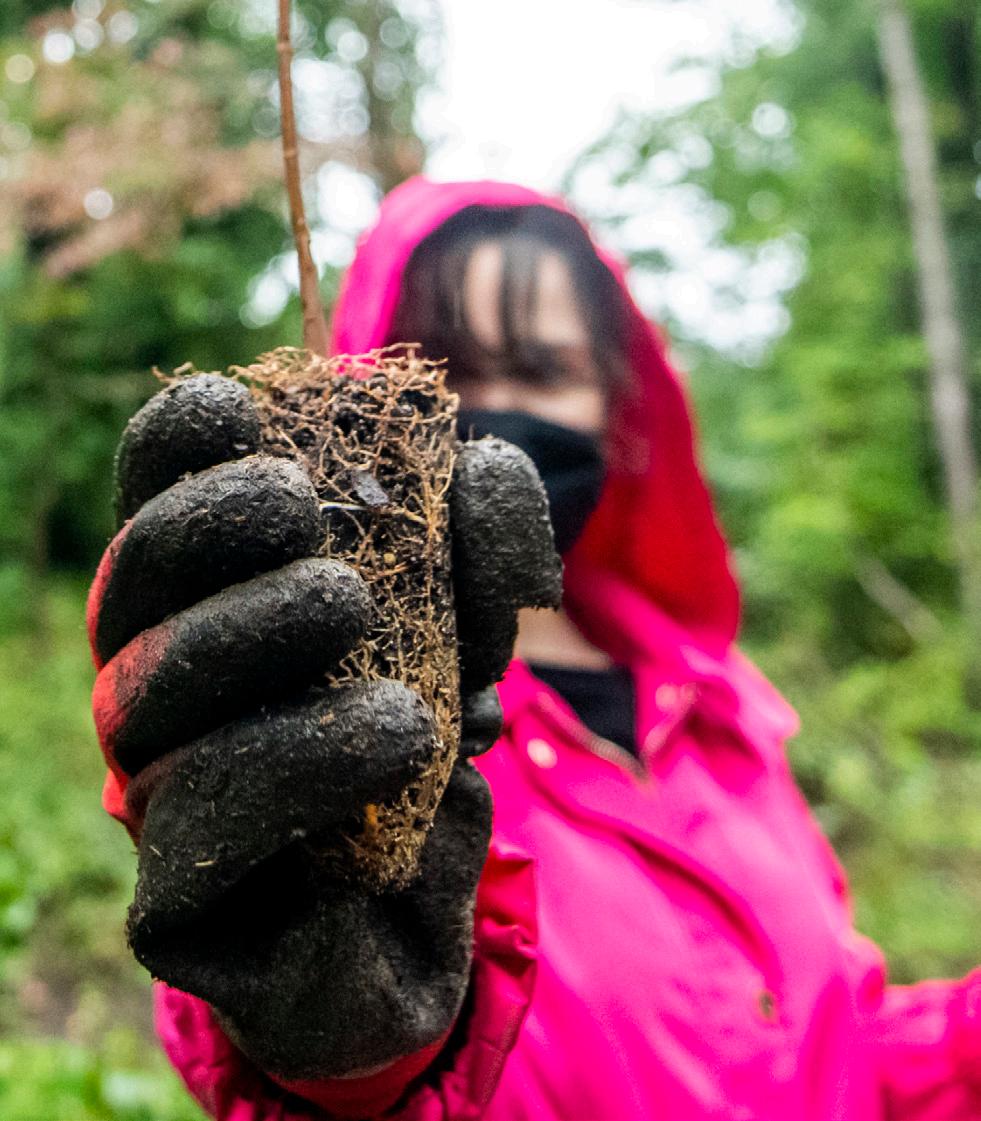 Inspired by her superimposition series, Kehoe invites us to take action in our own hands in 200 Trees (2022), a two-part piece that consists of a video projection and performance piece followed by a socially engaged tree planting action.