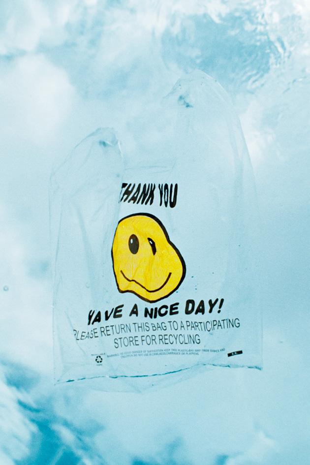 The title of Forsgren’s work hints at the irony and contradictions that his work reveals. The irony begins in how these bags convey different messages; they greet us and express love and even gratitude. Most of them have printed words like “Thank you”, others have happy faces, and corporate slogans, while others even recommend reducing, reusing, and recycling plastic.