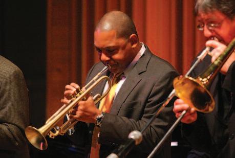 Trumpeter and composer Wynton Marsalis, once a student of William “Prof” Fielder, jams with Professor Conrad Herwig in a tribute to Prof at Nicholas Music Center. Fielder died on September 24, 2009.