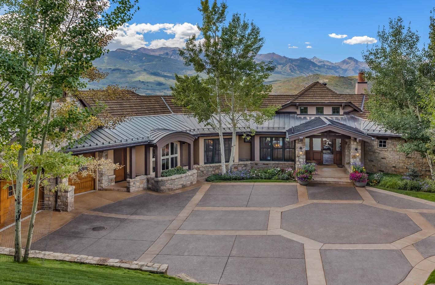 ASPEN Positioned in a premier Starwood location with close proximity to town, this Aspen residence enjoys stunning front row views of the Elk Mountains, and an excellent floorplan designed for single level living. Panoramic vistas can be found at every turn throughout the five acre property, with all of the rooms above grade. Thoughtfully laid out, the entry floor encompasses an impressive great room, primary suite and separate office, as well as another guest suite, the kitchen, dining and family rooms. Downstairs hosts the additional three bedrooms, and a spacious entertaining area with a wet bar adjacent to the wine cellar. There is abundant outdoor space, from the covered upper decks to the flat manicured lawns that span the length of the home and look out onto open space and big views. With updates led by Charles Cunniffe Architects and Jo McGuire Design, the style of the home reflects timeless mountain elegance.