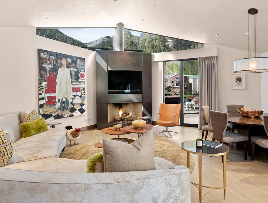 ASPEN Sophisticated tri-level duplex located in the heart of downtown Aspen. The dramatic entryway showcases the stunning floating staircase leading up to the upper level with vaulted ceilings, two living rooms each with a fireplace, gourmet chef's kitchen, dining room for eight and large outdoor patio with dining area, hot tub and lounge spaces. Max Occupancy 10. STR #083588