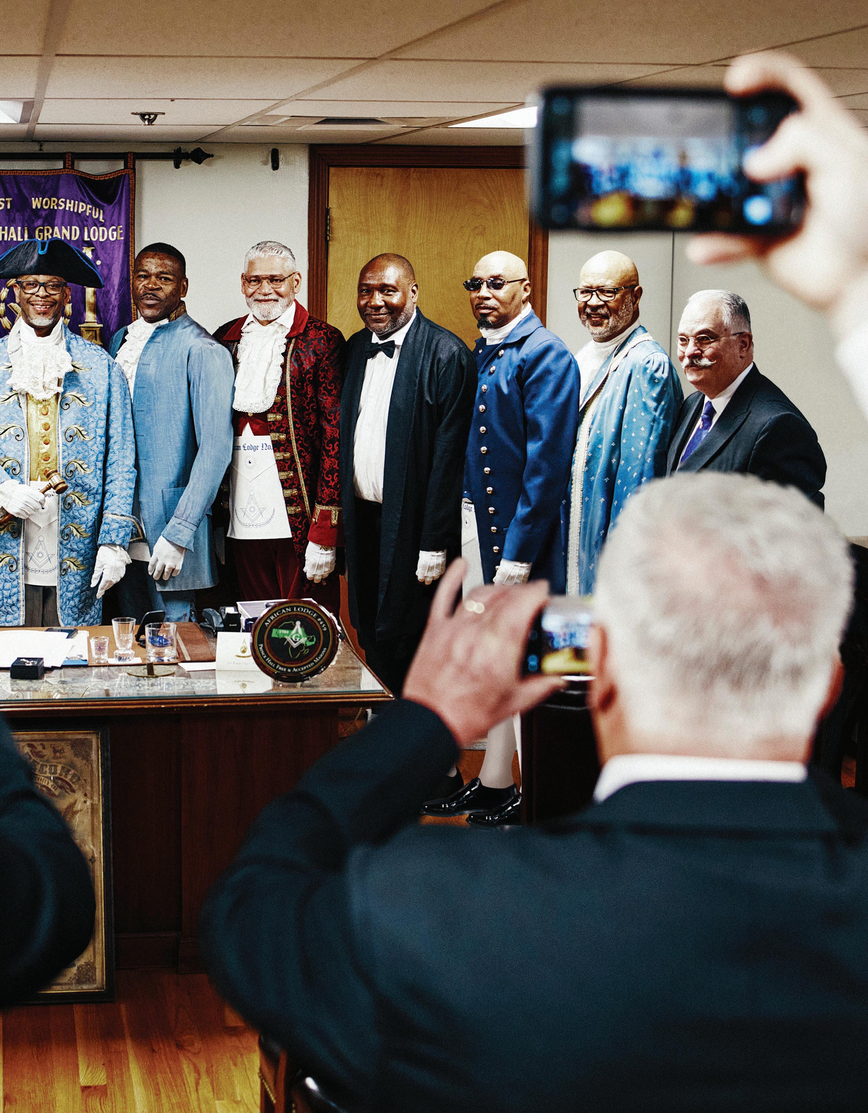 Pulling iPhones out of their 18th-century waistcoat pockets, a who’s who of Prince Hall Masons gathered in April for the 11th biennial reopening of African Lodge № 459 in Boston, the lodge founded by Prince Hall in the 1780s. Masonic leaders from around the country, including Massachusetts Grand Master Justin E. Perry (center, dressed as Prince Hall) and California’s David San Juan (fifth from right), participated as line officers in the ceremonial reopening of the lodge dressed in period-appropriate garb. The event also included a rare public display of the African Lodge charter—the basis for all of today’s Prince Hall Masonry.