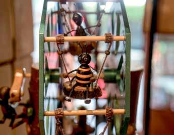 También está una familia de ratoncitos dentro de una vitrina. Al girar algunas perillas, una ratoncita toca el piano mientras su familia canta. “Tiene una bocina y una tarjeta de memoria con 40 villancicos diferentes”, añade. O la rueda de la fortuna que al ir girando muestra distintos tipos de insectos.