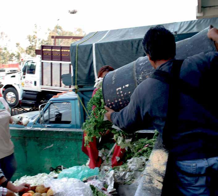 grupos de autoayuda, anexos, albergues, grupos religiosos o de los cinco bancos de alimentos que existen en la capital acuden a la Central de Abasto para pedir como donación el producto que no cumple con los estándares estéticos y de calidad para vender, como frutas o verduras golpeadas, magulladas o muy maduras.