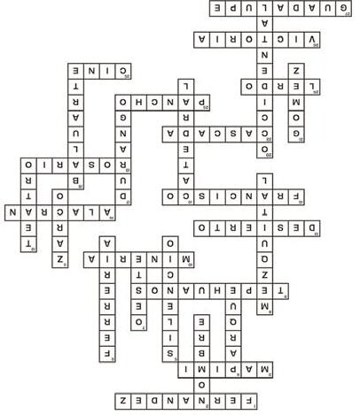 ros: Cañón de... / 3. Pueblo mágico famoso por su historia minera y su cercanía con la misteriosa Zona del Silencio. / 9. Pueblo indígena originario de Durango, con una rica cultura y lengua propia. / 10. Producción especialmente de plata, una de las actividades históricas en Durango. / 13. Zona árida que cubre parte de Durango: ...Chihuahuense. / 14. Animal símbolo del estado de Durango, debido a que abunda en la región. / 15. Espacio que narra la vida y legado de Pancho Villa: Museo... Villa. / 19. Cuevas subterráneas con estalactitas y estalagmitas: Grutas del... / 22. Hermosa caída de agua ubicada en la zona serrana: ...El Saltillo. / 23. Revolucionario duranguense, líder de la División del Norte: ...Villa. / 24. Ciudad vecina a Gómez Palacio, conocida por sus parques y su ambiente tranquilo. / 25. Durango fue escenario de muchas películas del viejo oeste y producciones de Hollywood, por eso le dicen “la Tierra del...”. / 26. Capital oficial del estado, en honor al primer presidente de México: ...de Durango. / 27. Cuerpo de agua artificial cerca de la capital: Presa... Victoria.