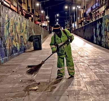 basura en la capital. Miles de trabajadores de limpieza, entre personal del gobierno y recicladores independientes, barren calles, descargan camiones y lavan avenidas para que la ciudad amanezca limpia.