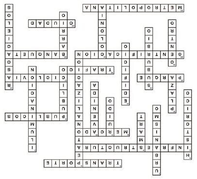 1. Disciplina que estudia el crecimiento y la organización de las ciudades, buscando un desarrollo sostenible y funcional. /3. Medida que restringe el acceso vehicular en ciertas calles para priorizar el tránsito de personas./4. Corazón antiguo de la ciudad, donde se concentran los edificios coloniales, plazas y monumentos: centro... /6. Ciudad que integra la tecnología para optimizar recursos, movilidad y servicios públicos: ...city./ 7. Sistema de alumbrado que brinda seguridad y visibilidad durante la noche: ...pública. /9. Exceso de sonido producido por autos, construcciones y multitudes: ...urbano. /10. Vía amplia que facilita el tránsito vehicular. /11. Lugar accesible para todos, como parques o plazas: espacio... /12. Espacio público abierto, donde la gente se reúne para descansar, convivir o celebrar eventos./13. Construcción de varios pisos usada para vivienda, oficinas o servicios./14. Zona periférica de la ciudad donde predominan las viviendas familiares y hay menor densidad poblacional, conecta directamente con el núcleo urbano./15. Edificio de gran altura, símbolo de modernidad y desarrollo económico. /19. Complejo que reúne tiendas, restaurantes y entretenimiento: ...comercial. /21. Área residencial o mixta de una ciudad, con nombre y límites definidos. /22. División o zona dentro de la ciudad con identidad propia y una comunidad que comparte costumbres.