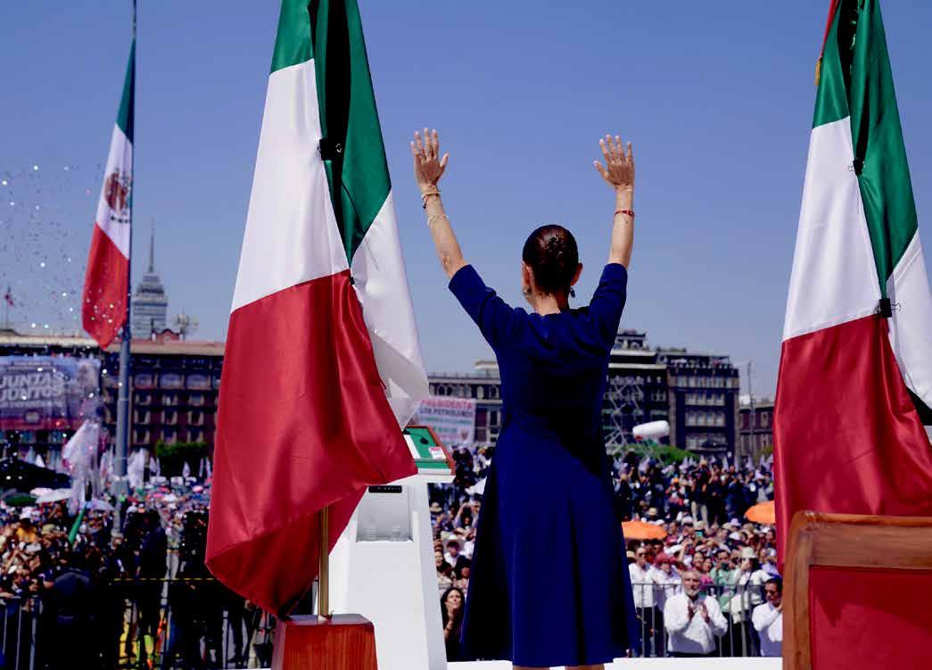 La presidenta Claudia Sheinbaum resaltó que prevaleció el diálogo y el respeto con su homólogo de Estados Unidos, Donald Trump, para pausar los aranceles a los productos mexicanos. “Somos naciones en igualdad de circunstancias, no somos más, pero tampoco menos. Siempre pondremos por encima de todo el respeto a nuestro amado pueblo y a nuestra bendita nación”, señaló. Ante miles de simpatizantes en el Zócalo, la mandataria pronunció un mensaje de poco más de 40 minutos para reiterar que México no cederá en su soberanía. A su vez, presentó una estrategia económica de cinco ejes: fortalecer el mercado interno, ser autosuficientes en alimentos básicos y energía, promover la inversión pública, impulsar la producción nacional con el Plan México y consolidar los programas del Bienestar. La Secretaría de Seguridad capitalina informó que 350,000 personas asistieron al evento “de forma pacífica y con saldo blanco”.