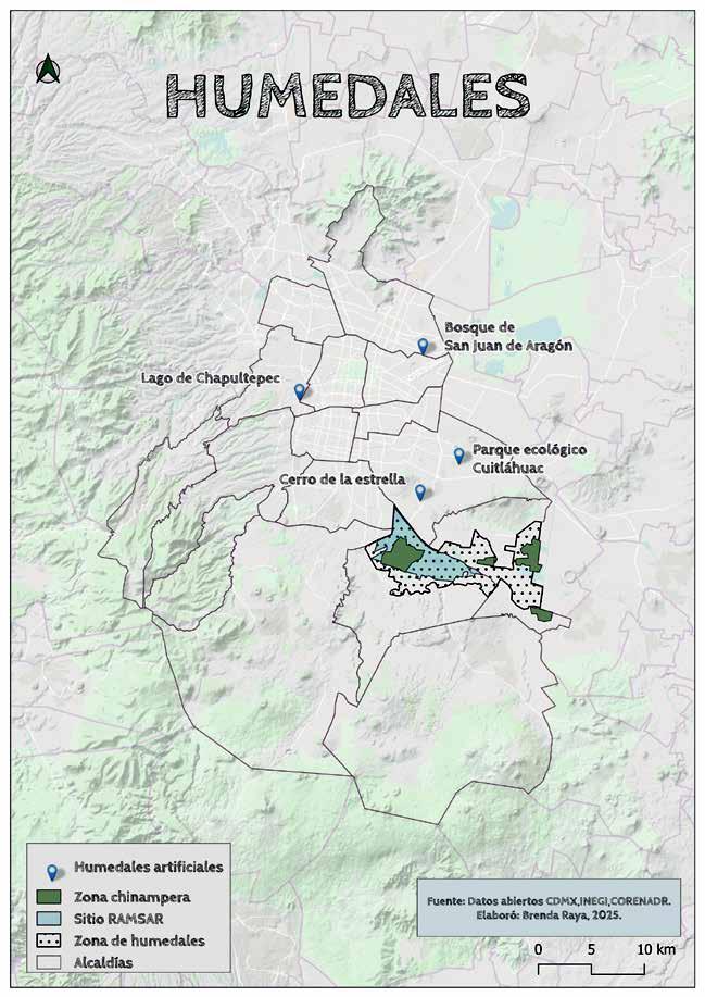 El pasado lacustre de la Ciudad de México es identificado por su sistema de lagos, ríos y sobre todo por su destacado y complejo manejo de sus aguas. Hay un tipo de cuerpos de agua menos reconocido: los humedales. Se trata de ecosistemas conocidos como zonas de transición entre entornos terrestres y acuáticos, importantes por su alta concentración de especies aun cuando sean producidos de manera artificial. En 1985 México suscribió la Convención Ramsar, también conocida como Convención sobre los Humedales, un acuerdo internacional que promueve la conservación y el uso racional de estos ecosistemas mediante acciones locales y nacionales. La adhesión de nuestra nación fue de gran trascendencia pues somos el segundo país en el mundo con presencia de humedales.