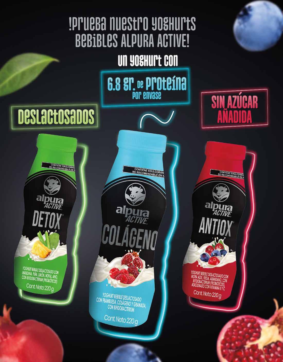 ALPURA COLÁGENO® es parte de la línea active de la marca, que también incluye a Alpura Antiox® (sabor mora azul arándano, con vitamina E) y Alpura Detox® (sabor piña apio nopal).