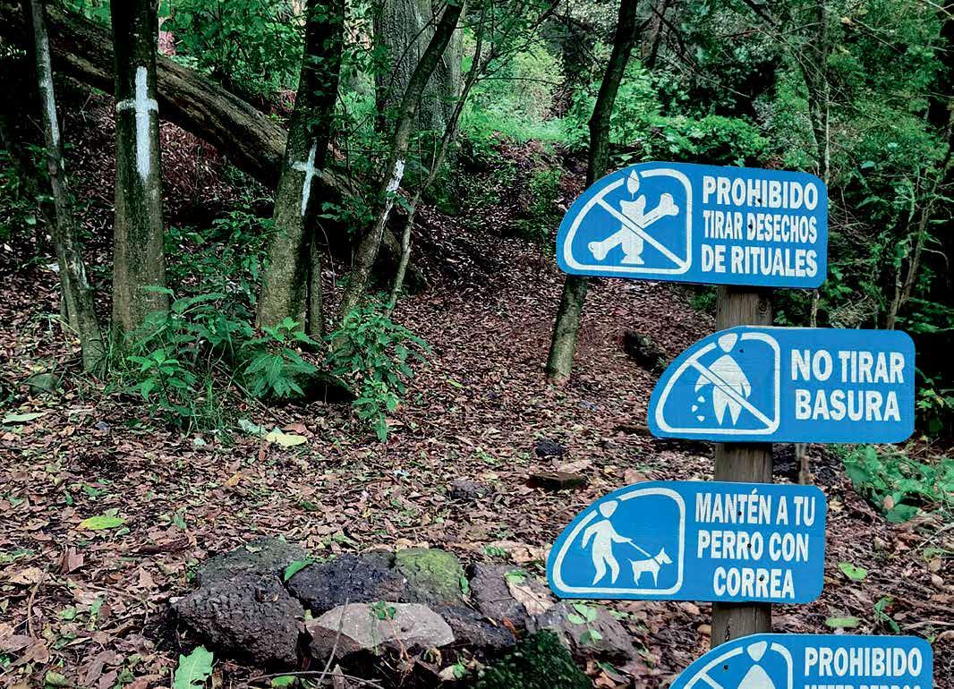 En el bosque de Los Dinamos, ubicado en la alcaldía Magdalena Contreras, encontramos un letrero que prohíbe tirar basura relacionada con rituales, pues en esta Área Natural Protegida es común ver animales degollados entre los arbustos, ropa rasgada, collares de chaquira, cocos y veladoras. Esto podría formar parte de ofrendas o ritos religiosos, aunque también se trata de una preocupación ambiental. Pero, ¿qué hace que este bosque sea el sitio predilecto para llevar a cabo prácticas religiosas y rituales? Israel García, quien es santero desde hace 25 años, explica a + Chilango que, dentro de la religión Yoruba (asociada a la santería), se realizan ofrendas a las deidades en lugares