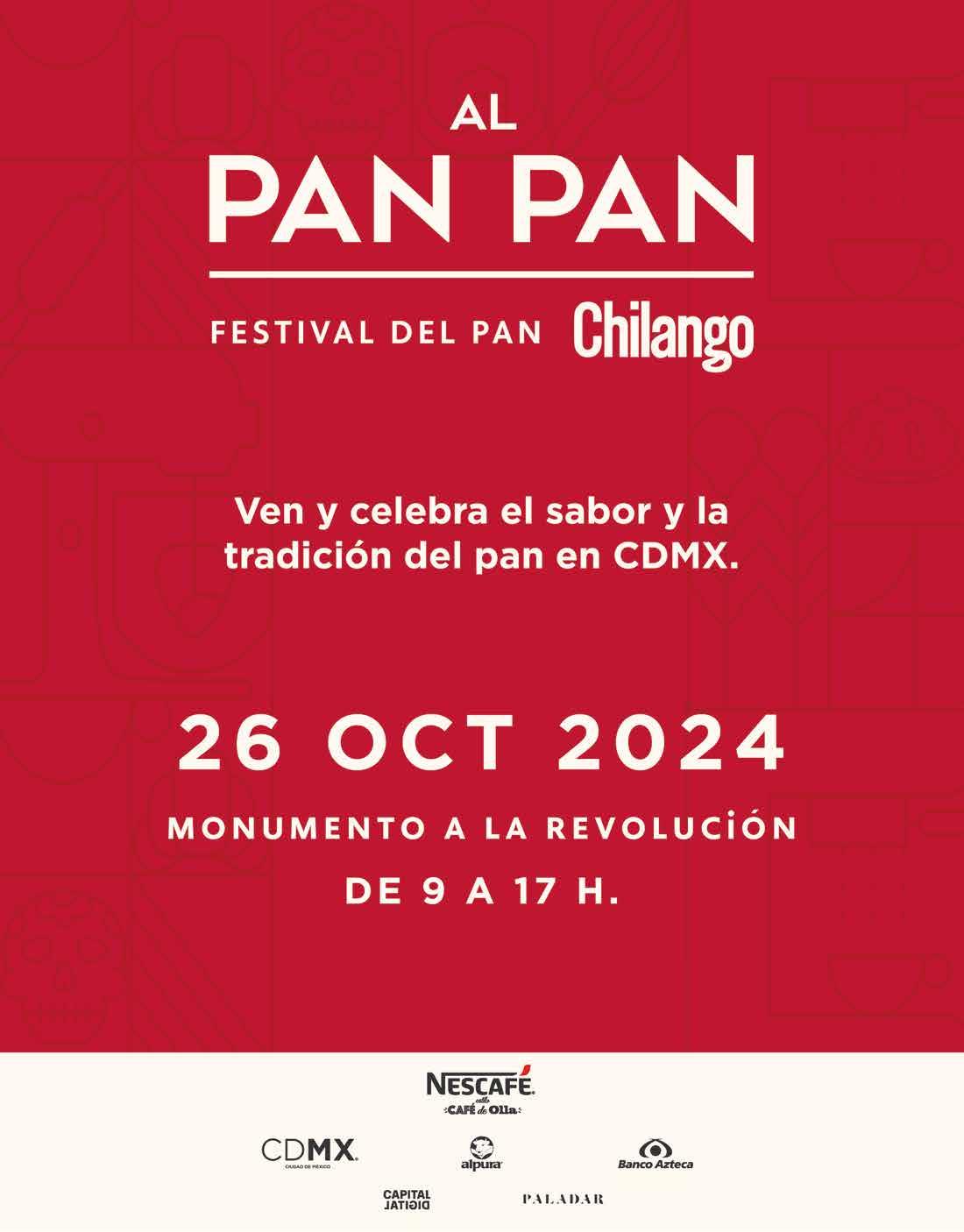 Así como en “El panadero” de Tin Tan, Al Pan Pan. Festival del Pan Chilango traerá “bolillos y teleras en sazón, gendarmes, besos y conchas de a montón”, junto con otras piezas clásicas y reinventadas de la bollería mexa, para degustar en familia. Tu asistencia será súper importante para elegir el pan de muerto más sabroso. También, habrá actividades como un concurso de donas al estilo de las festas infantiles), la exposición de calaveritas del periodista gastronómico Pedro Reyes, un módulo de fash tattoo y más. La entrada es libre.