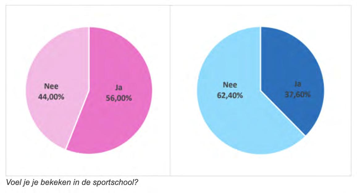 Voor mannen liggen deze percentages vele malen lager. Slechts 37% voelt zich bekeken, maar belangrijker nog, slechts een kwart van deze groep vindt dat ook vervelend. Het maakt dat minder dan 1 op de 10 mannen zich bekeken voelen én dat vervelend vinden, tegenover bijna 4 op de 10 vrouwen (37,5%) die zich dus oncomfortabel voelen in de sportschool.
