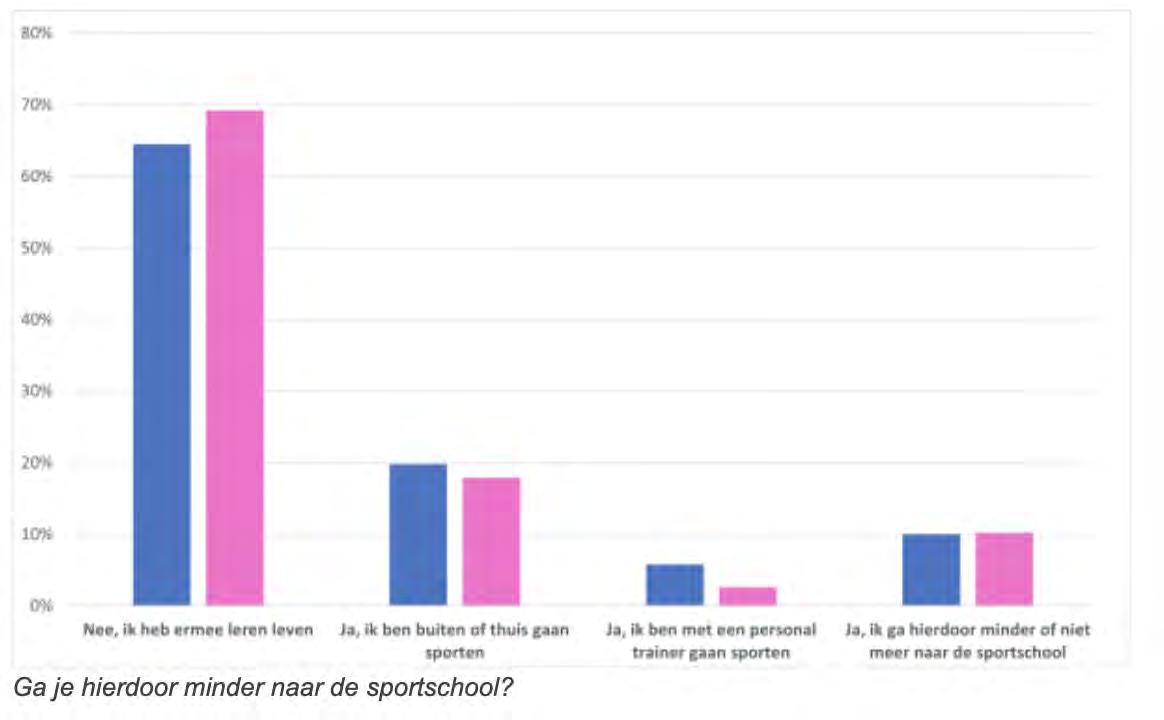 Vrouwen die zich niet meer prettig voelen en daardoor minder naar de gym gaan zoeken meestal wel naar een alternatief. Zelfstandig thuis- of buiten sporten is de meest genoemde optie, gevolgd door met een privétrainer aan de slag gaan. Een klein deel van de vrouwen is door de blikken van medesporters helemaal gestopt met sporten of bezoekt simpelweg minder vaak de gym.