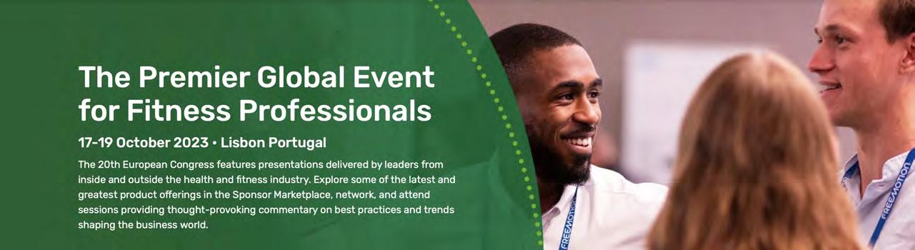 The Sponsor Marketplace provides attendees with networking opportunities and a chance to talk one-to-one with a variety of leading suppliers in a relaxed environment. The event concludes on 20 October with tours of some of Lisbon’s ingenious health clubs— space is limited and participants can opt in for an additional fee during registration.