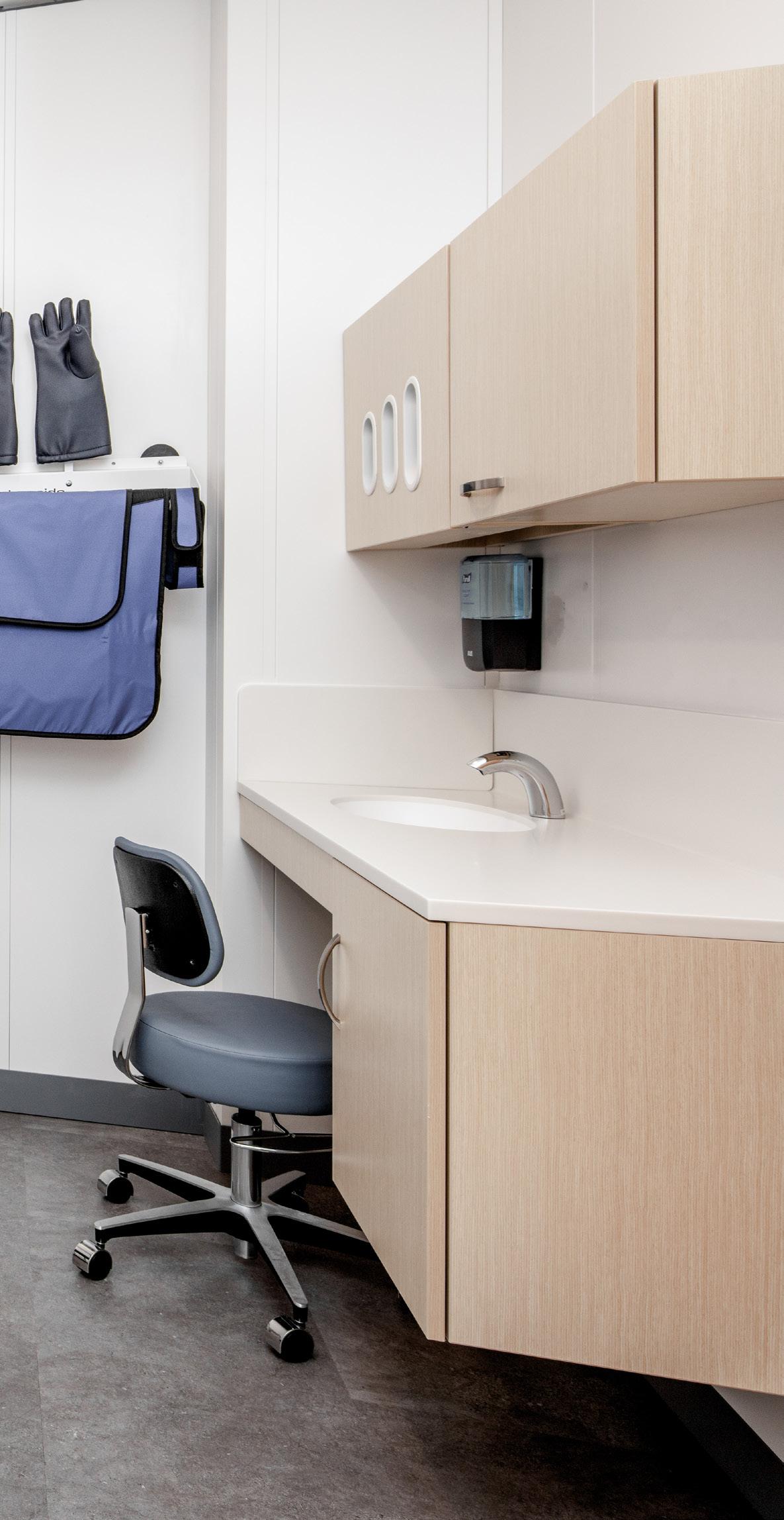 We utilize magnet technology as part of our health clinic designs as magnets offer increased adaptability and flexibility to the end user. The steel surfaces of our walls allow everything a health space requires, including monitors, workstations, interdiagnostic panels, lead apron racks, sharps containers, gloves, and paper towel holders, etc., to be mounted via magnets specifically designed to hold the corresponding weight.