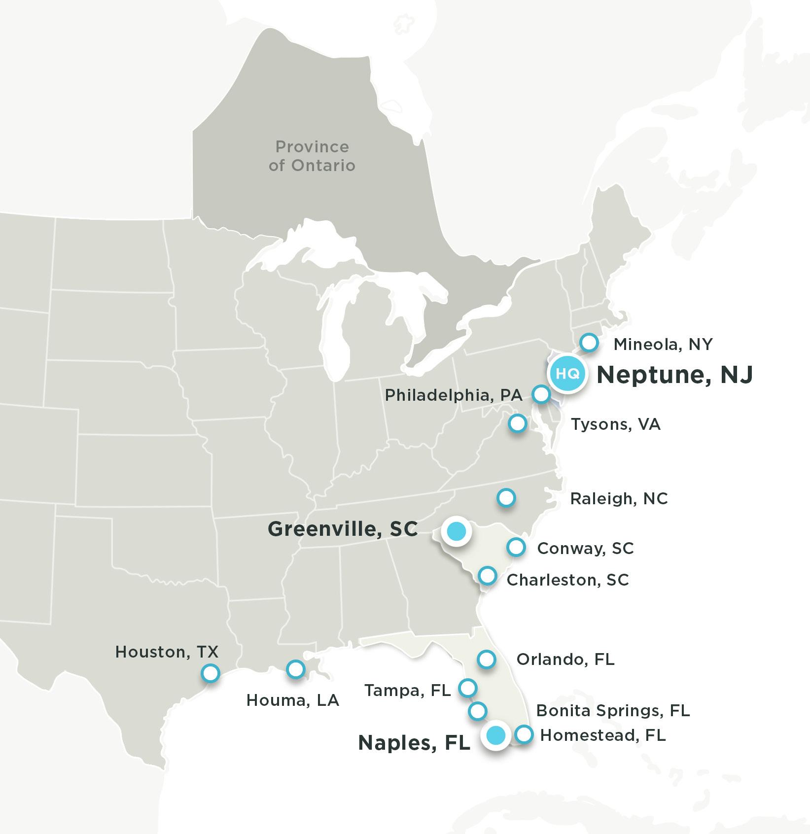 Our team holds licensure in 49 states, the District of Columbia, and Ontario, Canada, and we’re deeply familiar with jurisdictional permitting and local processes across North America. That means fewer handoffs, faster approvals, and consistent documentation across every market. Backed by strategically located offices in New Jersey, South Carolina, and Florida, we provide responsive, regionally informed service wherever your program takes you.
