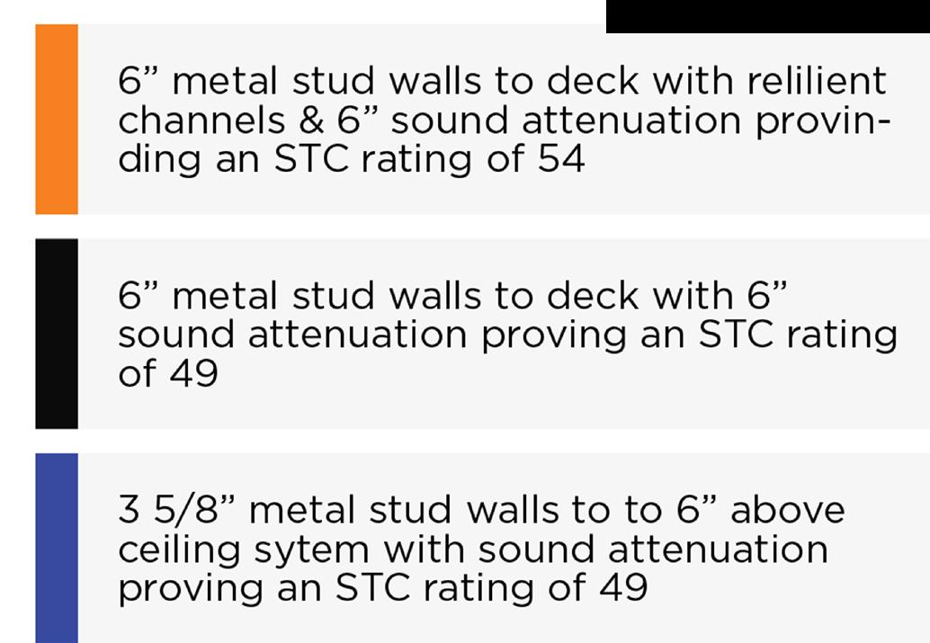 6. Lay-in ceiling with sound attenuation providing a CAC value of 42. Typical throughout
