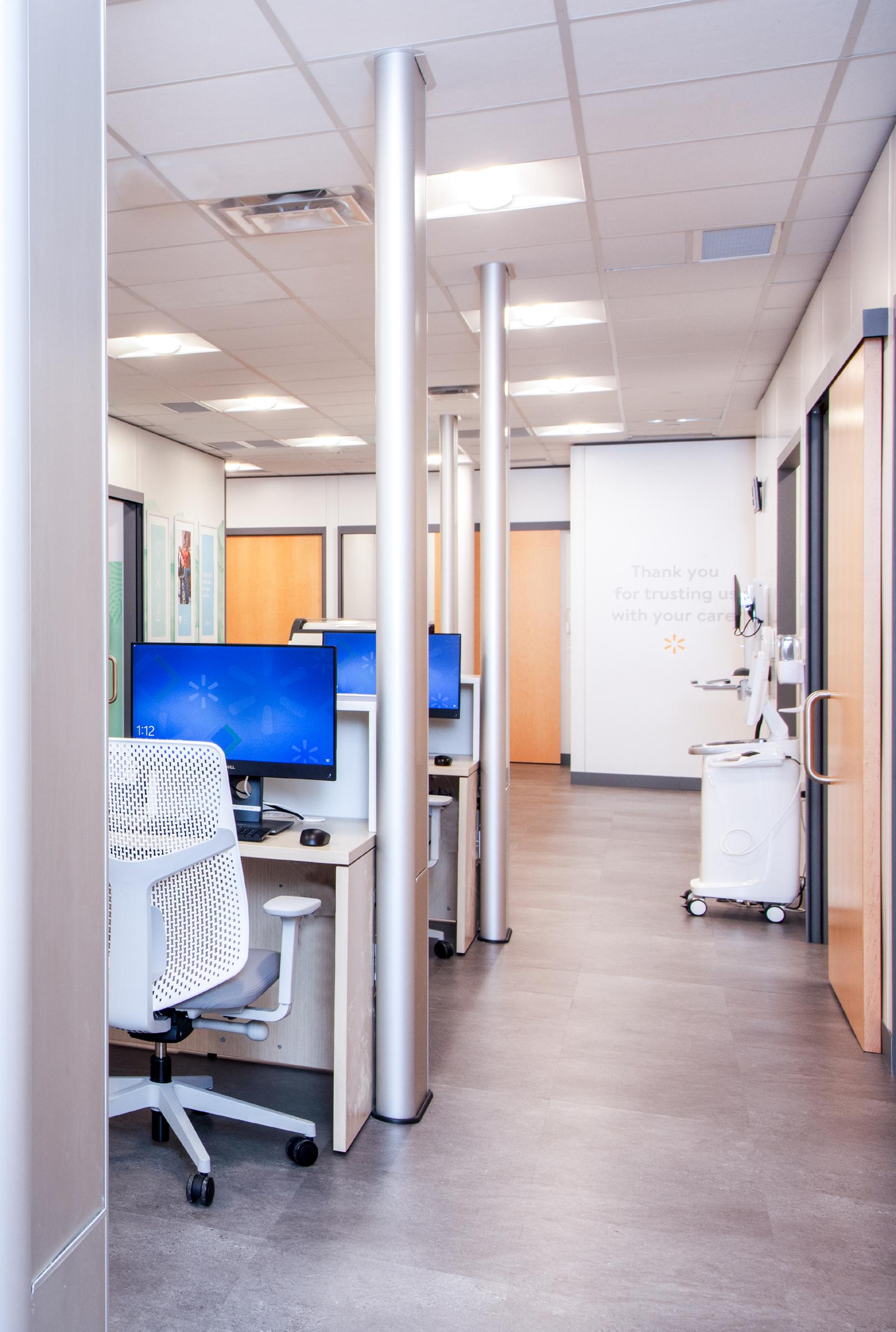 We utilize magnet technology as part of our health clinic designs as magnets offer increased adaptability and flexibility to the end user. The steel surfaces of our walls allow everything a health space requires including monitors, wall mount workstations, inter-diagnostic panels, lead apron racks, sharps containers, glove boxes, paper towels holder, etc., to be mounted via magnets specifically designed to hold the corresponding weight.
