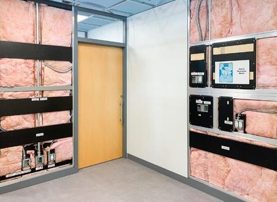 The wall system is modular and specifically designed for healthcare environments. With an STC rating range of 44-48, it can reduce sound between rooms, making speech unintelligible so protect patient privacy. This is a significant improvement over traditional drywall, which typically has an STC rating of 35. The wall system achieves this high STC rating by using a combination of soundabsorbing materials and sound-blocking techniques.
