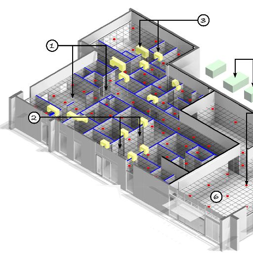 6. Lay-in ceiling with sound attenuation providing a CAC value of 42. Typical throughout