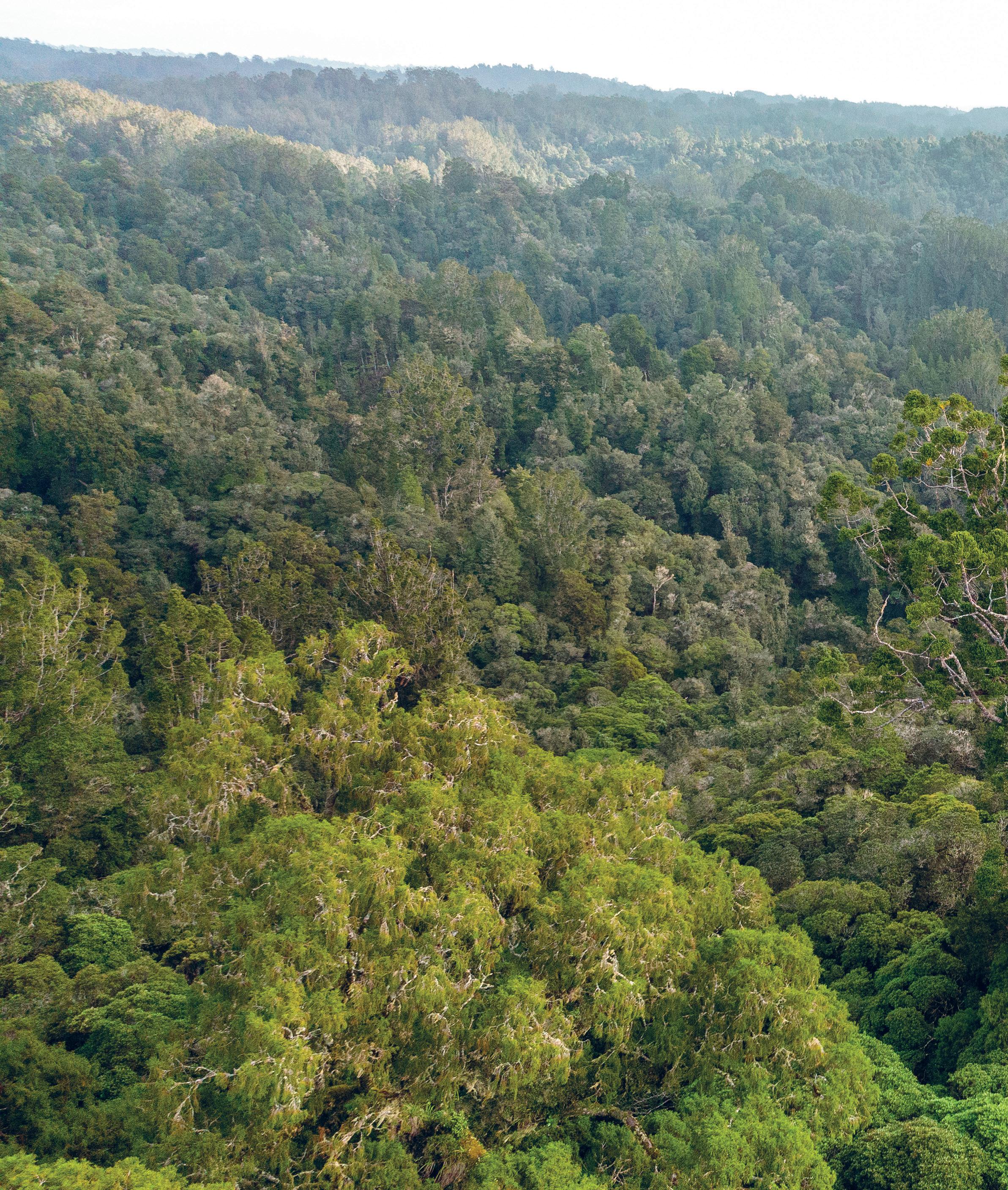 At the top of a hill, o’Halloran brought our vehicle to a stop so we could take in the view. A hundred shades of green seemed to be floating before us, like a cloud hovering 10, 20, 30 metres off the ground. It was as if all 25,000 hectares of the forest were filling our view. Far to our right, a majestic kauri, standing alone like a sentinel, pierced the canopy.