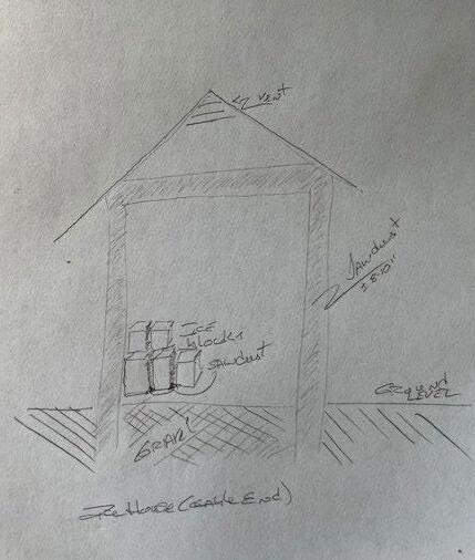 Not for nothing, Bert and Brenda’s early years of an uncertain food supply made them keenly aware of the importance of growing your own (long before ‘growing your own’ came to mean something entirely different). His parents, like Brenda’s, were early and inveterate gardeners because in those days there was no social safety net, no food pantry like nowadays to save them from what might have seemed like slow, if certain, starvation. A reliable electrical supply was also dubious at best and refrigeration technology was slow to bring the chest freezer into America’s households. So, everyone put up (viz canned) or root-cellared their summer’s bounty in order to keep the proverbial wolf from the door. A well-built ice box (double walled, gravel-floored and partially subterranean just like a good root cellar banked into a hill) could keep ice from melting until early winter the next year.