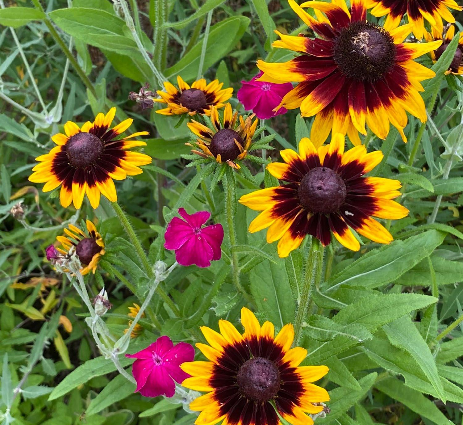 Black-eyed Susan (Rudbeckia hirta) intermingled with Rose campion (Lychnis coronaria)