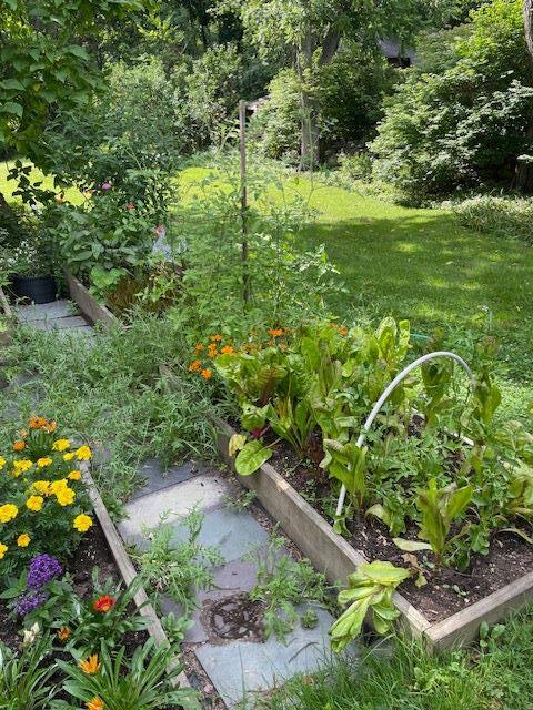 Thus my role now seems to be maintaining a balance between all the plants that compete for a finite amount of soil. I allow self-seeding as a means of sustaining and even increasing plants I wish to encourage and it has also brought some interesting plants into my yard, but at the same time it also brings unwanted plants and those that are invasive require vigilance so as to prevent their overwhelming those that I chose to plant or wish to encourage. Thus I periodically battle bittersweet, buckthorn and garlic mustard to name the more common villains. There are also other plants that are not welcome and keeping the balance between acceptable and unwelcome plants is a task that requires persistence. However, while gardening brings frustrations and disappointments at times, it also brings pleasure in the form of visual beauty, enjoyment of our creative efforts and a sense of peace and relaxation that comes with tending growing things. So it is a sort of symbiotic relationship with the garden in that my endeavors enable certain plants to thrive, while in turn a good harvest is sustenance for the table and a beautiful garden, however you define it, is sustenance for the soul.