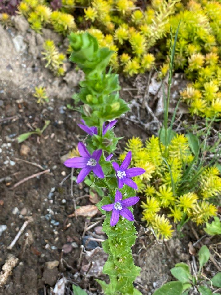 I’ve come to realize that where my ornamental garden is concerned it is sustained by a whole host of plants that I allow and even encourage to go to seed. Annuals that regularly pop up are gloriosa daisies (Rudbeckia hirta), which I originally sowed when the garden was new and bare of any plantings. Their bright yellow flowers with rings of orange and copper make a cheerful splash and in addition they are easy to grow. While they can come back another year if the winter is mild, for the most part they flower, set seed and then die. I also have a couple of wildflowers that invited themselves in: daisy fleabane (Erigeron annuus) and Venus’ looking glass (Triodanis perfoliata). However, it has