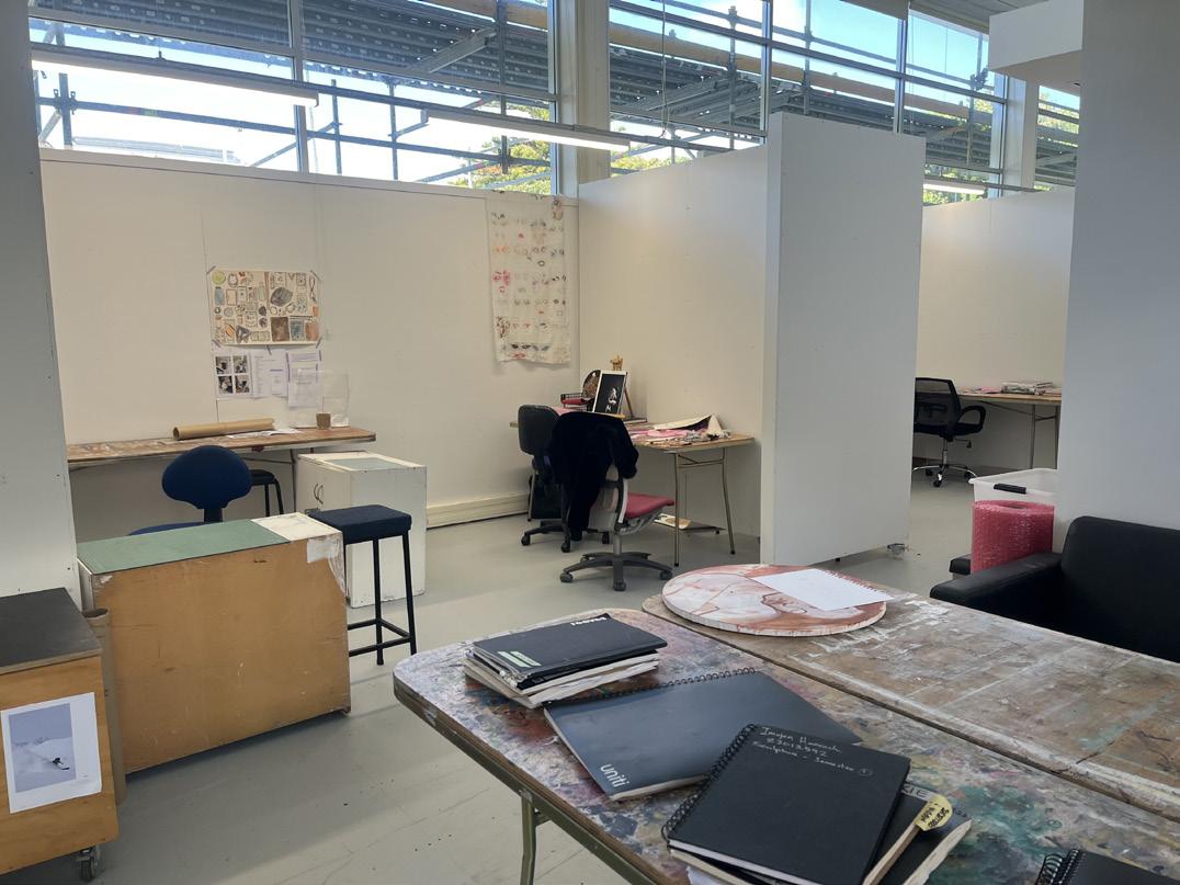 This downsize meant students no longer have test spaces. These are places for students to install their work for critique. Now, they must display their work in their studio space.