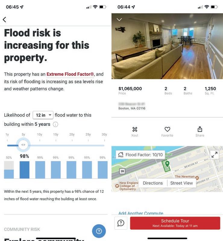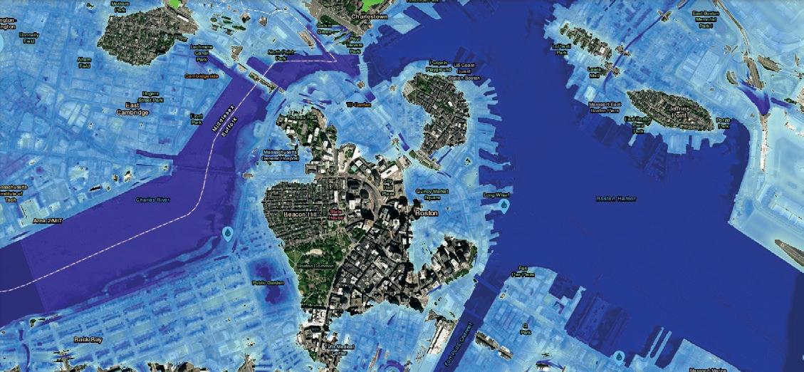 As global temperatures rise, cata strophic flooding in downtown Boston has gained high probability. Flood Factor, an online flood assessment tool, predicts a 95% probability of at least one foot of water in Back Bay basement condos within the next five years. The risk declines only slowly as you climb uphill.