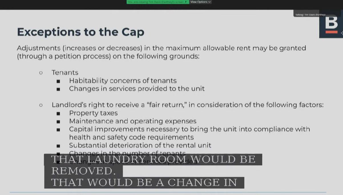 At the Boston City Council rent control hearing on Feb. 22, Tim Davis, Deputy Director of Research and Development, Office of Housing Stability showed how the cap can be disregarded by the rent control board. Public Domain.