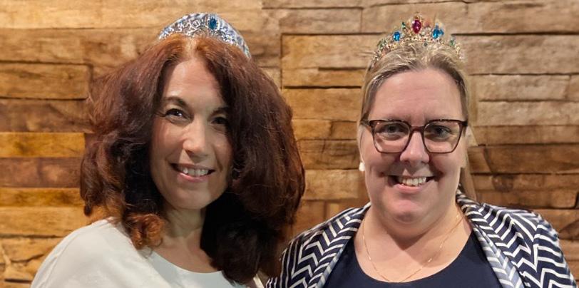 Professor Maria Stover and Senior Lecturer Regina Cassell celebrate 20-plus years of teaching at the Celtic Fox. Associate Professor Kristen Grimmer gifted the pair with crowns for the evenings festivities.