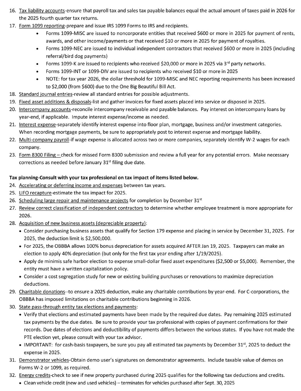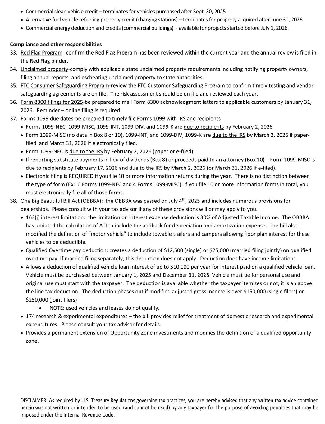 Moving forward, however, there are matters which are presently out of our hands – what will CARB come up with in response to the EV repeals; the ever-changing landscape of the Trump tariffs currently in the hands of the U.S. Supreme Court; will this year’s tax law changes have the intended effects in 2026; federal efforts to address consumer affordability issues and what that might mean for businesses; efforts here to alter tax policy, both in favor and against taxpayers.