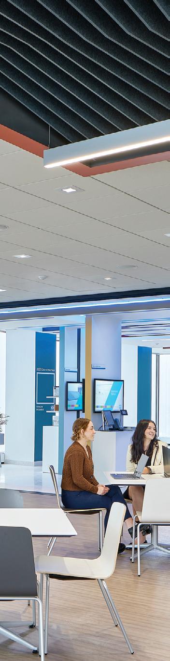 The design of this addition to University of Pittsburgh at Greensburg’s campus blends seamlessly with surrounding buildings with its crisp, clean look. Rycon Construction served as general contractor for the twostory, 32,085 square-foot facility which houses labs for nursing, health science, biology, microbiology, and chemistry — along with faculty offices and shared study space. The quality of workmanship showcases the superior skill of all the craftsman on the job and enhances the beauty of the design.