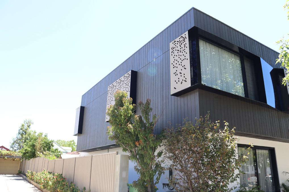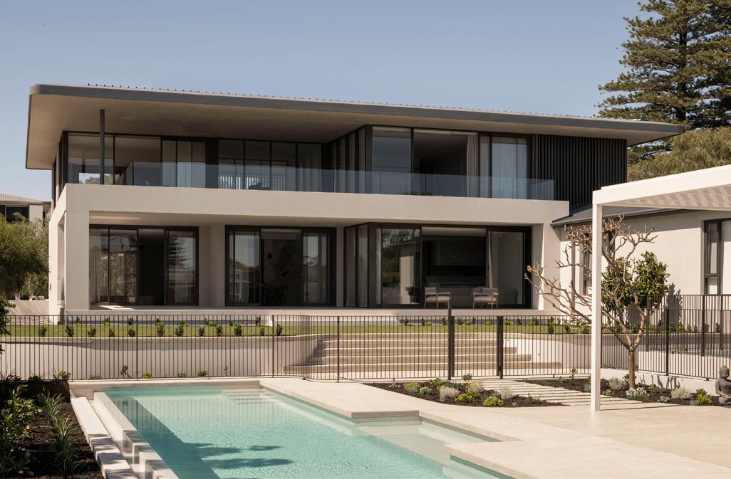 An architectural home with a luxury coastal vibe. This home was designed by ourselves to create a style of home that Geraldton hasn't seen before. Featuring two separate barn style structures cladded seamlessly in Metroll “MacSnapLock” Surfmist Matt sheets and James Hardie