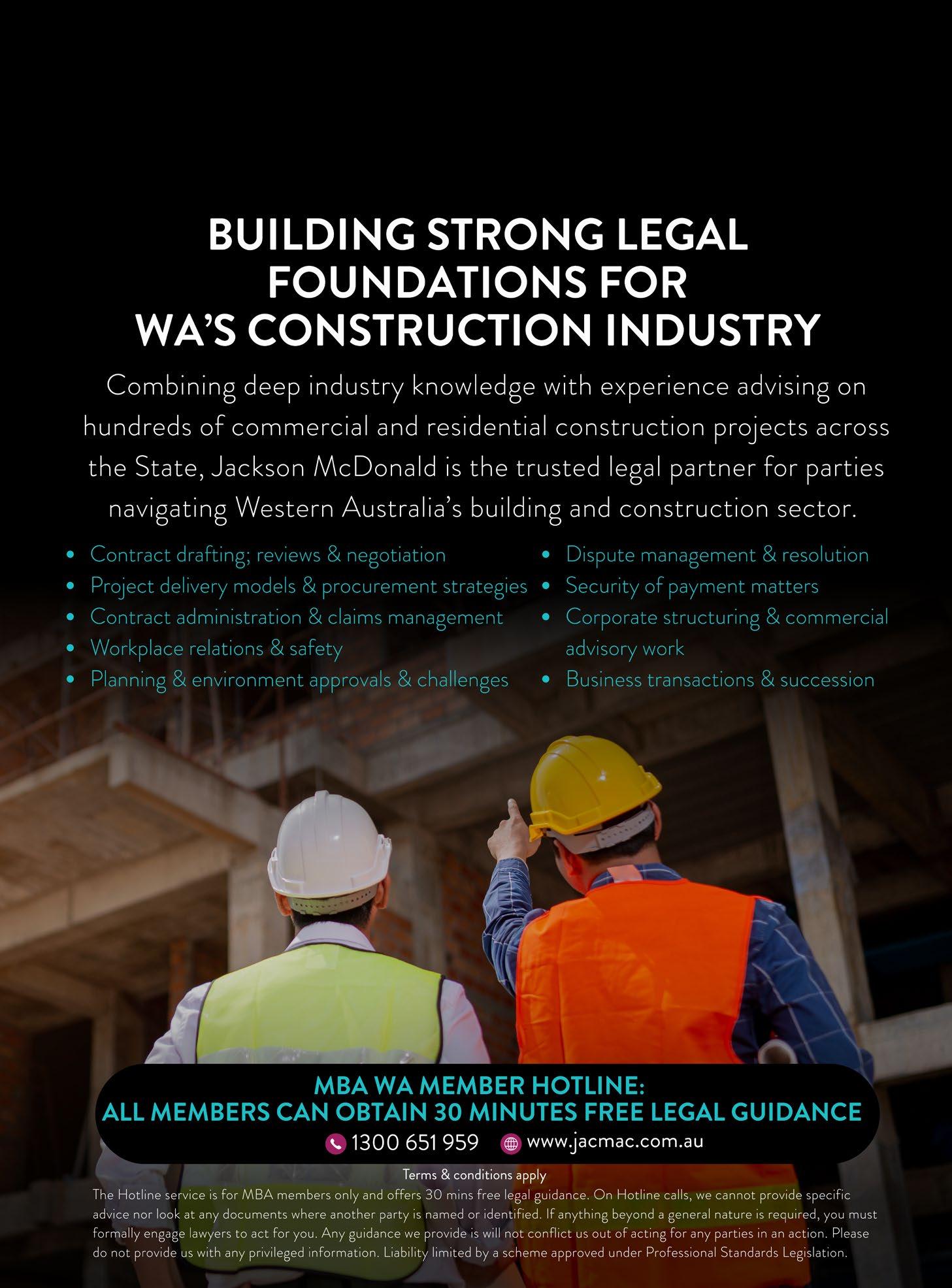 Enjoy reading through these pages as we celebrate the people and projects that make Western Australia’s building industry truly world-class.