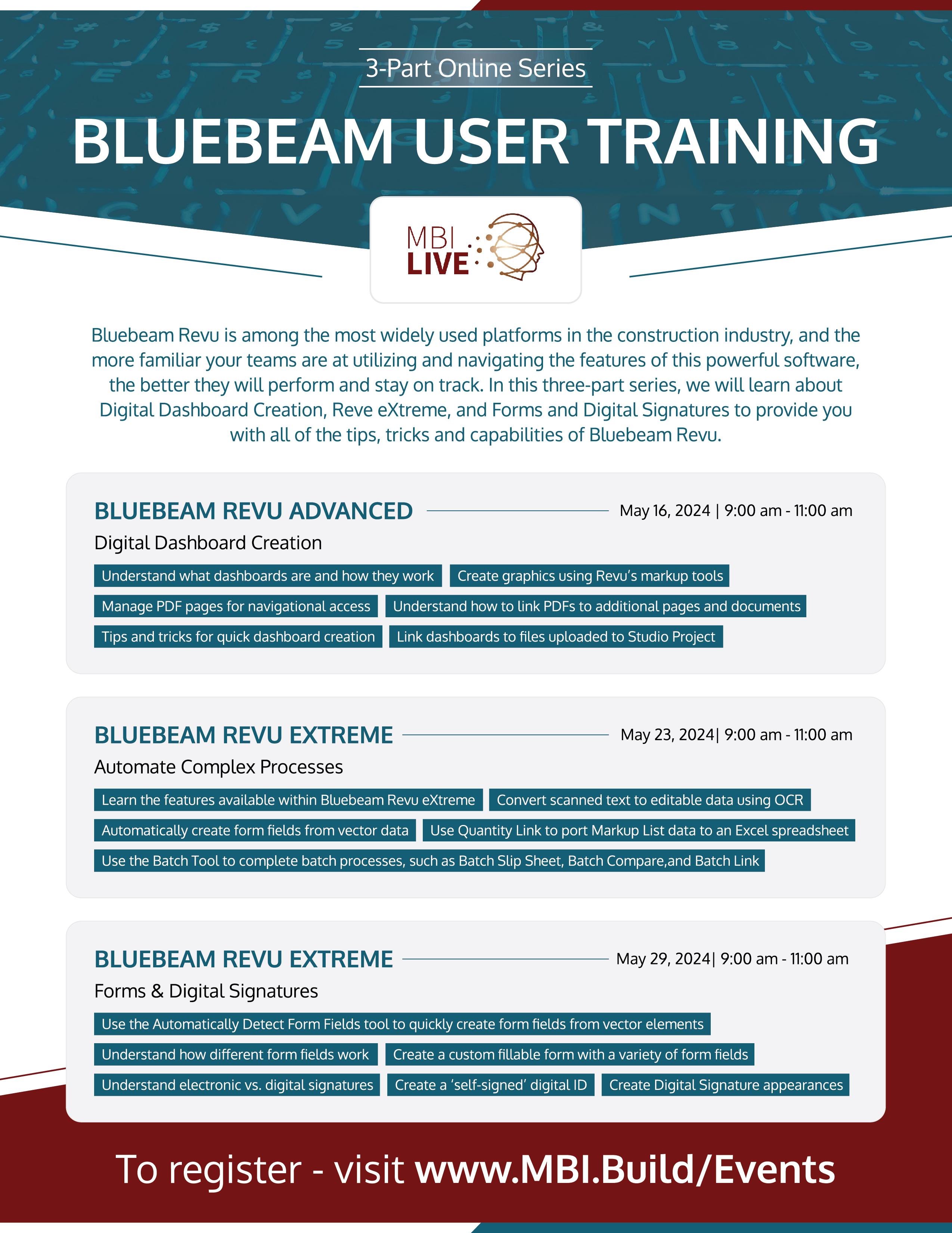 (MBI LIVE) Bluebeam Revu Advanced - Digital Dashboard Creation