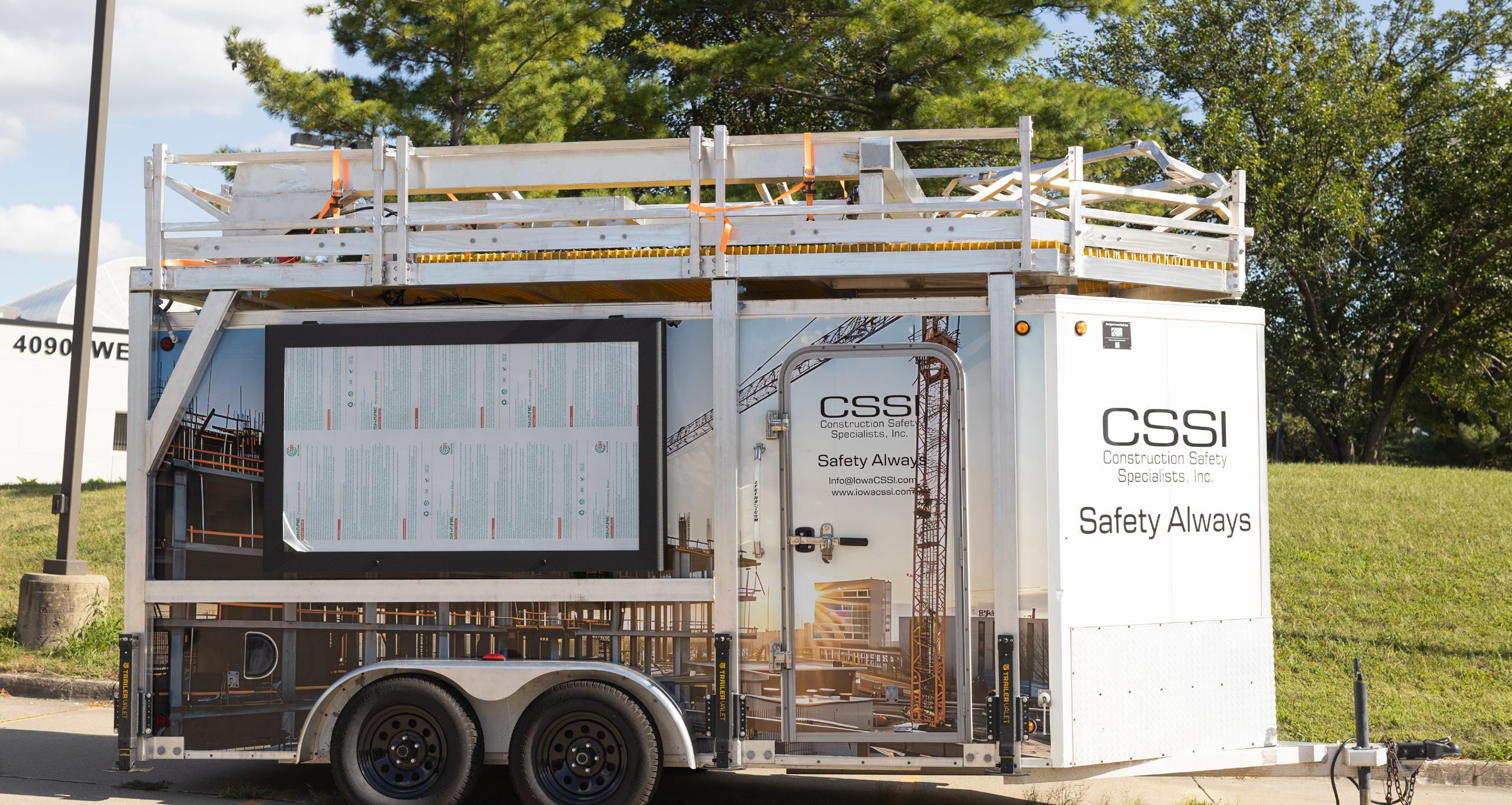 What started as a “wouldn’t it be cool if…” concept has emerged as a new way to deliver safety training to companies and jobsites throughout Iowa and the Midwest. The Board of Directors of Construction Safety Specialists, Inc. (CSSI) recently approved funding to retrofit a trailer with safety training equipment.