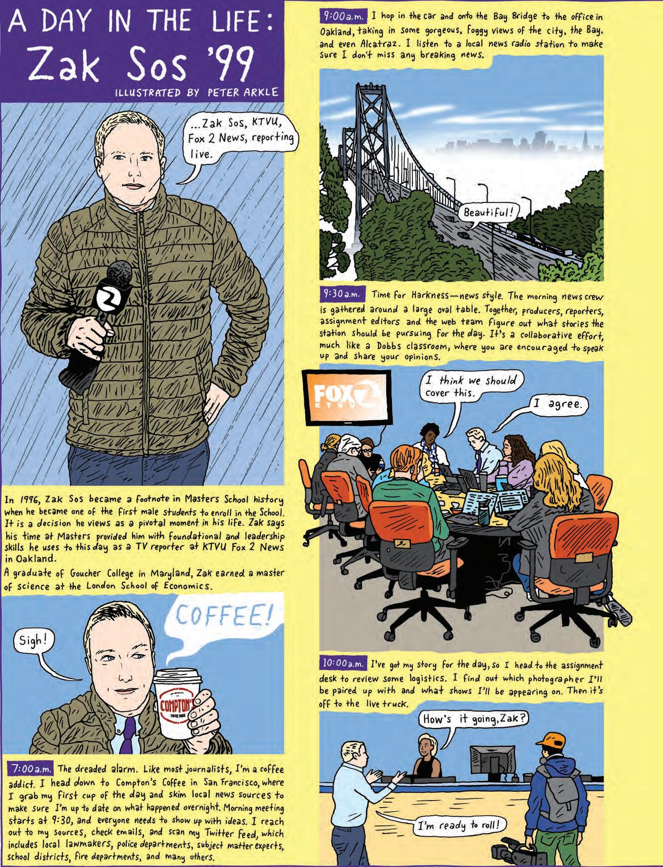 When Zak Sos ’99 needs a break from breaking news, he hits the slopes in Tahoe City — a mere 756 miles from Jackson Hole, Wyoming, where Melissa Malm ’73 made history.