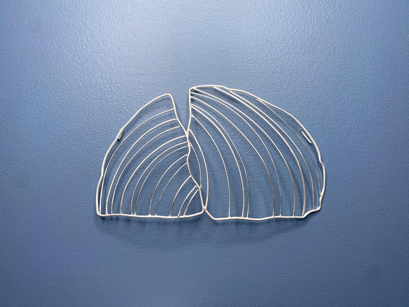 The lines on these shells form echoes with those long arching drift lines that stretch back and forth across the shore – back and forth across time. Lines that are in constant movement but are here held still in wire for us to hold the impossible together.