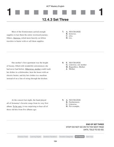 8. F. NO CHANGE G. Likewise, our mother H. Regardless, Mother J. Mother