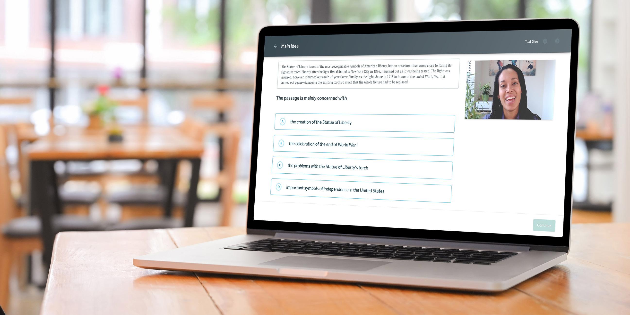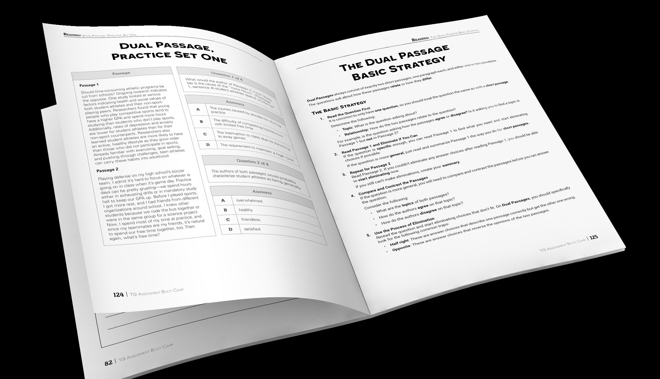 Students learn about test-specific strategies— identifying question types, eliminating incorrect answers, and double-checking their work—and practice applying them.