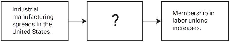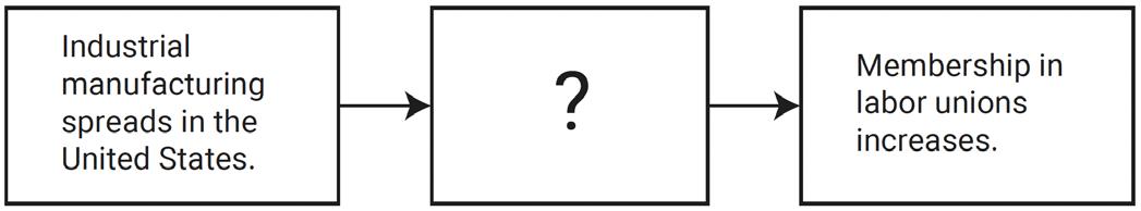 4. The correct answer is D. The rise of industrial manufacturing in the United States led to plentiful jobs being offered in factories. However, these jobs were often performed in unsafe conditions, for long hours, and for little pay, so workers banded together into labor unions to fight for their rights.