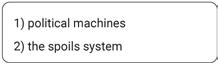 If the question focuses on politics, eliminate answers not related to political machines or civil service reform.