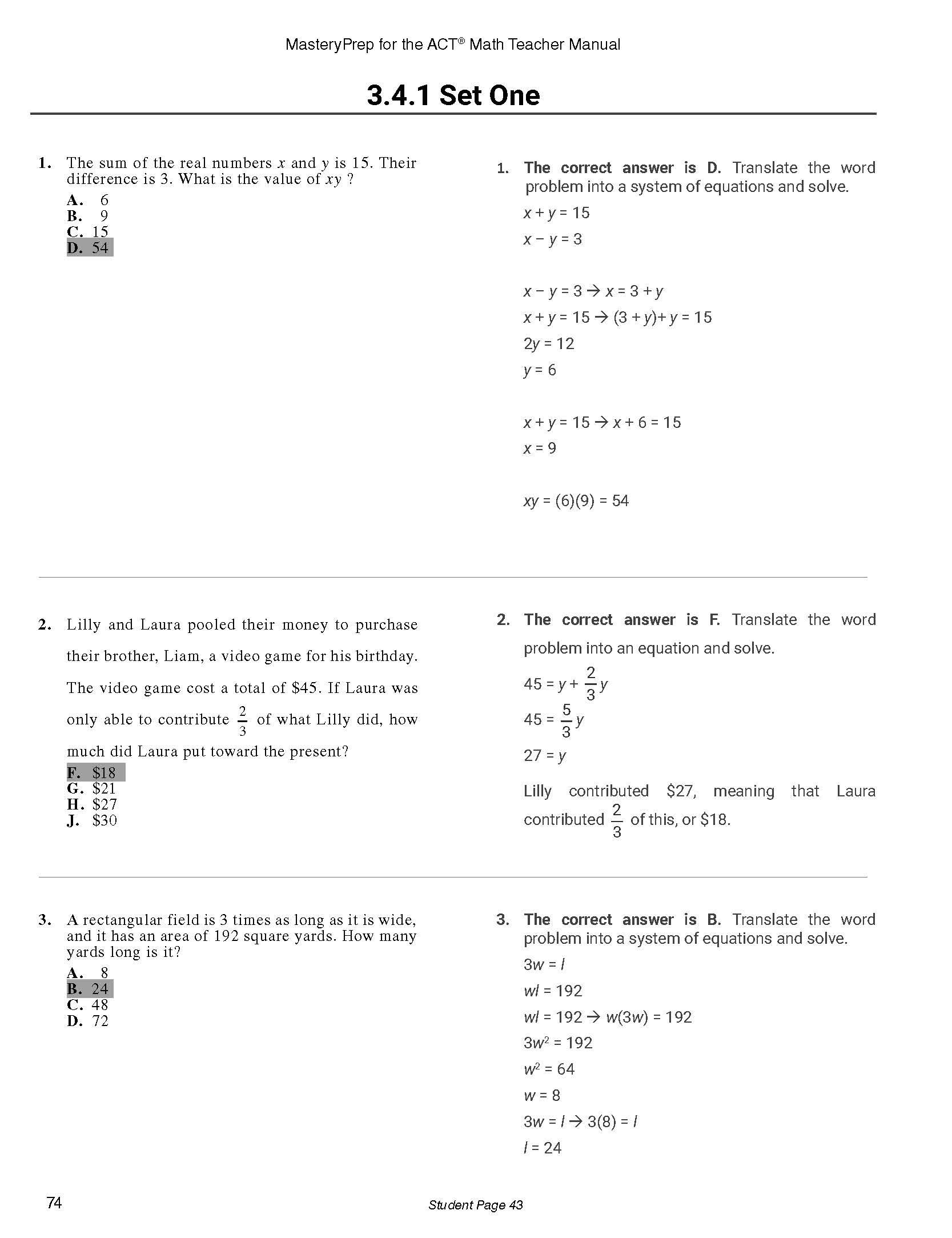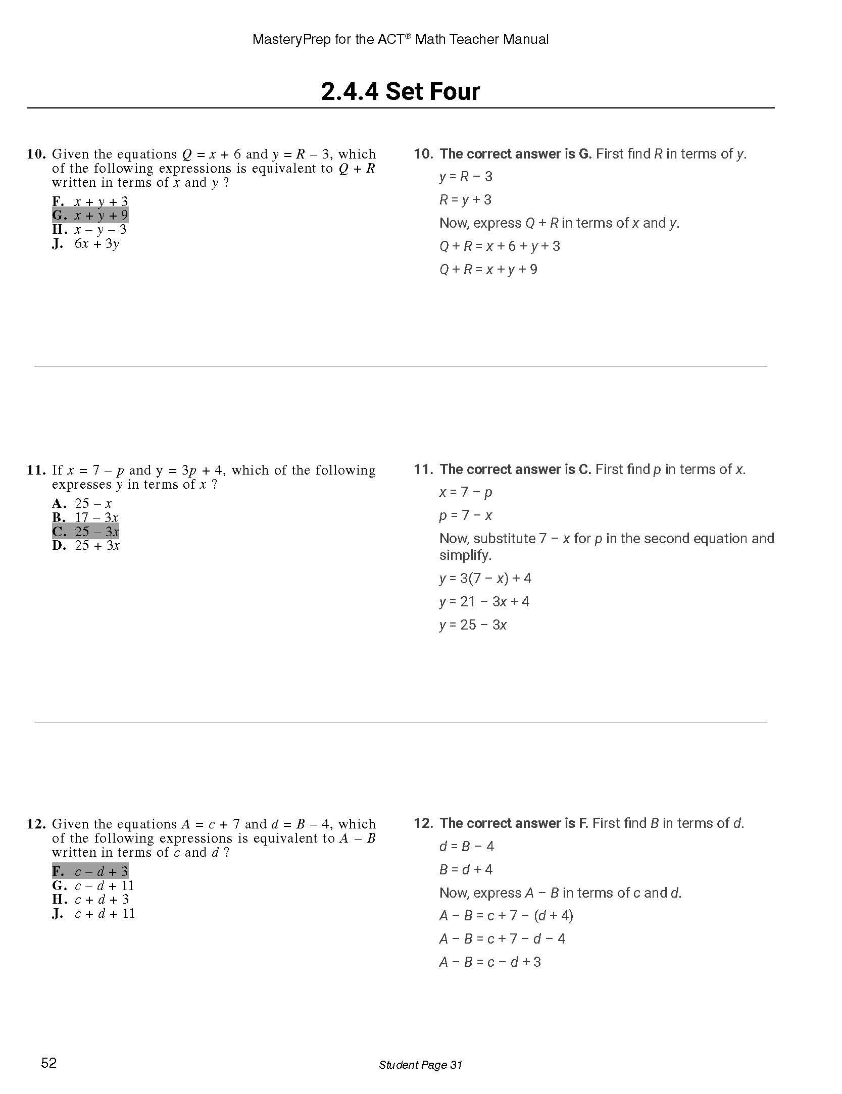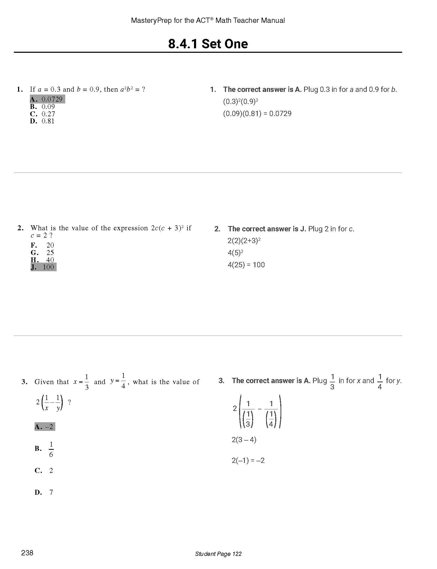 MasteryPrep for the ACT - Math TM Part 1 by MasteryPrep - Issuu