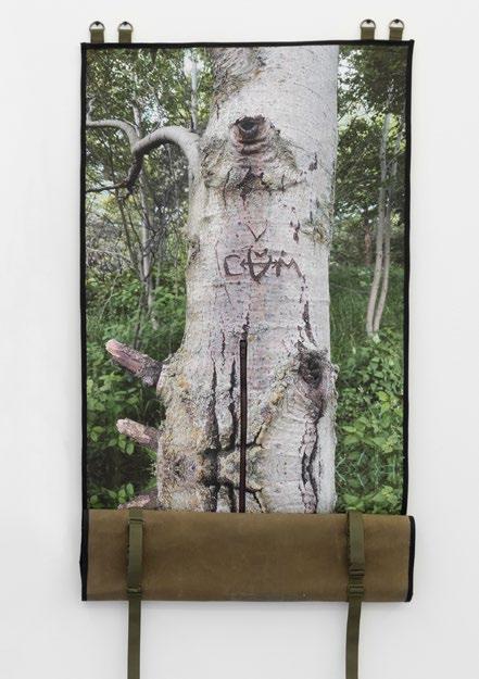 With these two pieces, Chicago Gears, Faysal aims to reflect on the area’s controversial history and its multiple narratives deciphering unexpected encounters between species, races, genders, sexualities, social classes and even political vocations that were often at odds with each other, ranging as they did from ecological conservation through to war strategies. Faysal started to experiment with forms, materials and images found in these bird sanctuaries with the intention of creating a hybrid style capable of evok- ing multiple meanings and desires. The resulting objects suggest something almost functional from the camping mat while orbiting between the seemingly contradictory visual tactics of concealment and hypervisibility, camouflage and overexposure, recognition and confusion, seduction and repulsion.